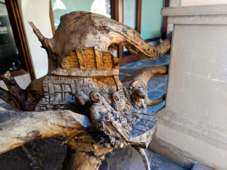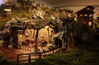 Punto di partenza è il grande Presepe che campeggiava al centro di Piazza San Pietro a Roma durante le feste natalizie del 2022 ed ora è esposto nella piazzetta sotto il Municipio. Creato da un gruppo di artisti ed artigiani del legno di Sutrio e del Friuli Venezia Giulia, è composto da 18 statue a grandezza naturale in legno di cedro disposte su una superficie di 116 metri quadrati e illuminate da 50 punti luce, che lo rendono particolarmente suggestivo la sera. A fare da cornice alle statue, la grotta (pure in legno) con una cupola alta 5,65 metri di 41 mq. Per realizzarlo non è stato abbattuto nessun albero.